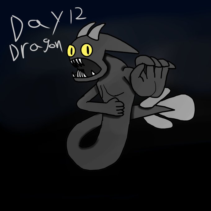 Day 12: #Dragon I know he has the exact color scheme as the devil from Cuphead. I didn't realize that when I created it. #mermay #mermay2021 #mermayday12 #wacommermay2021
