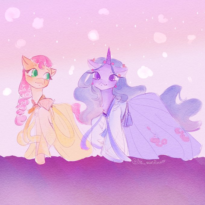 #Ponytober 6 - 7. Favorite Ship - New friend ✨ #inktober2021 6 - 7. Spirit - Fan #MLP #Sunny #IzzyMoonbow