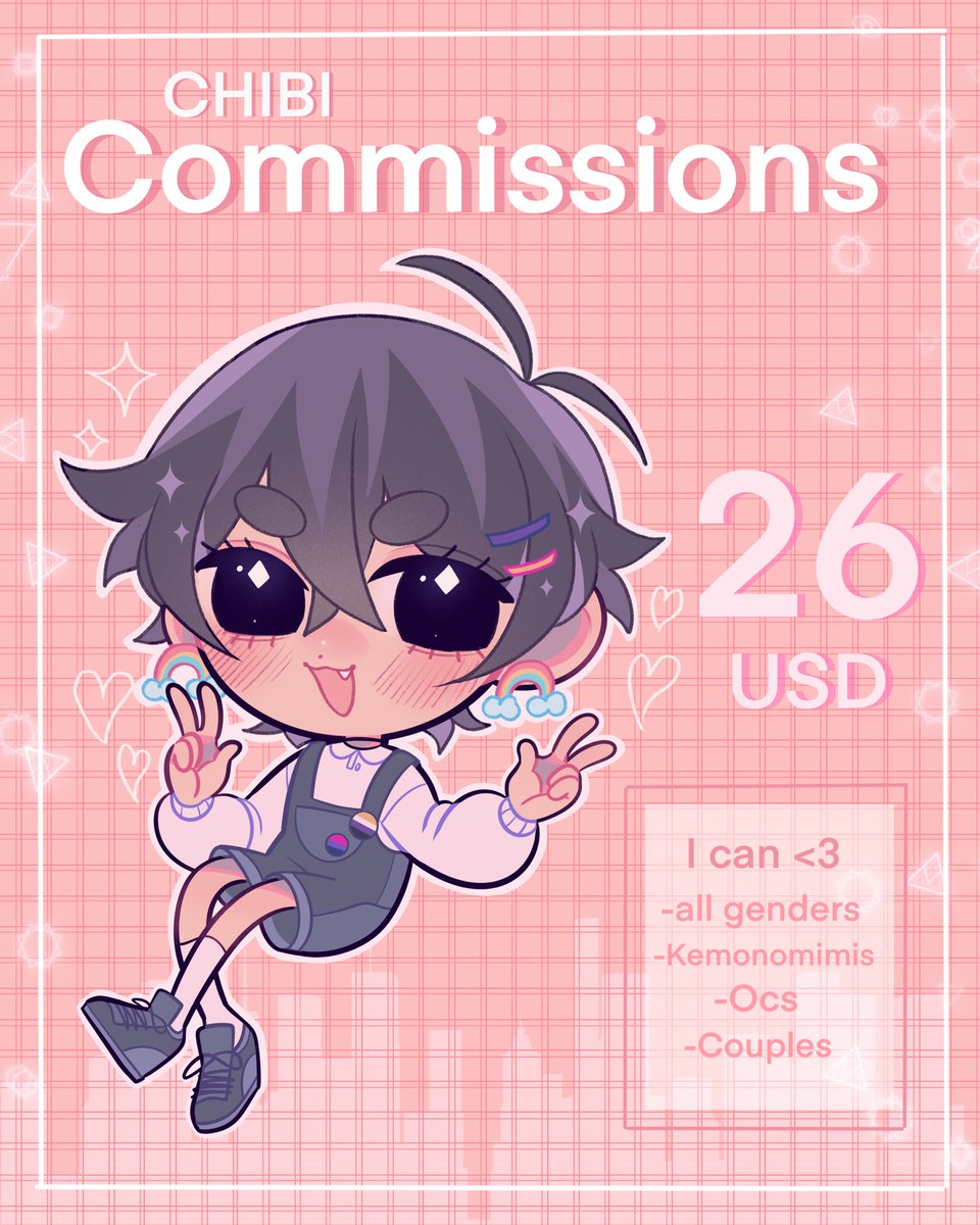 💖✨🌈CHIBI COMMISSIONS!!!💖✨🌈 💌✨how to order✨💌 Send me dm with the references of character and small description🙇🏻♀️🙏🏻✨ -payment: only paypal🌈 Rt are very apreciated!!!