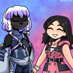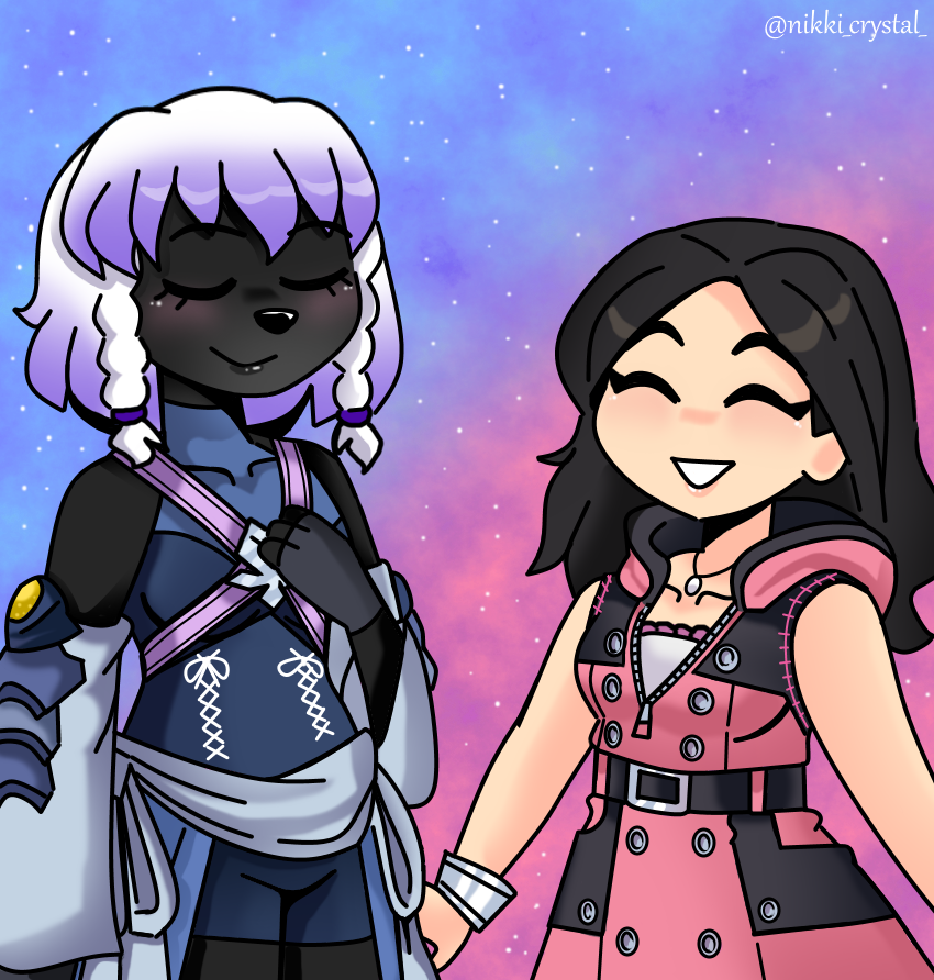 For @BALL0RA_RINA @HeresCircusBaby and @ChicaaChicken Ballora as Aqua 💙 I'm Kairi 💗 Circus Baby as Naminé 🤍 Chica as Xion 🖤 #fanart #FiveNightsatFreddys #KingdomHearts #cosplay #ballora #circusbaby #chica #sona