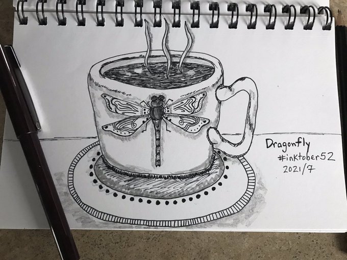 Nothing like a cup of dragonfly tea. #tea #ink #inktober #inktober52 #inktober52dragonfly @inktober
