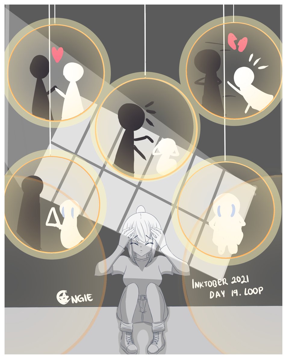 ✧ INKTOBER Day 19 "Loop"✧ Since my childhood, adolescence and high school life I have met people who have had a toxic relationship Thanks to it I have a trauma. #Inktober #inktoberday19 #inktober2021 #inktober2021day19 #day19 #loop
