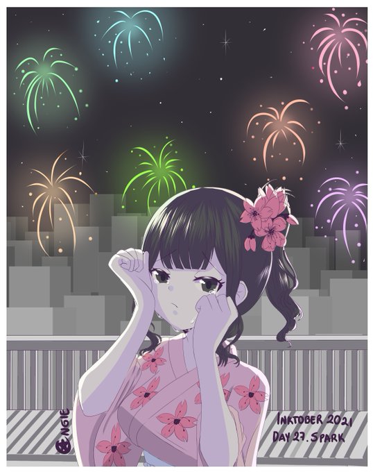 ✧ INKTOBER Day 27 "Spark"✧ どうして? 。 。 。 #Inktober #inktoberday27 #inktober2021 #inktober2021day27 #inktober2021Day27SPARK #day27 #花火 #着物