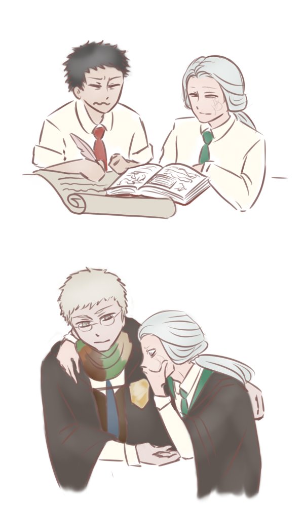 3 11 グワシのうちよそ落書き。勉強を教わるよそ転と教えるうち転、ボガートにやべえもん見せられて具合悪くなったうち転と介抱してくれるよそ転 23/04/23 19:16