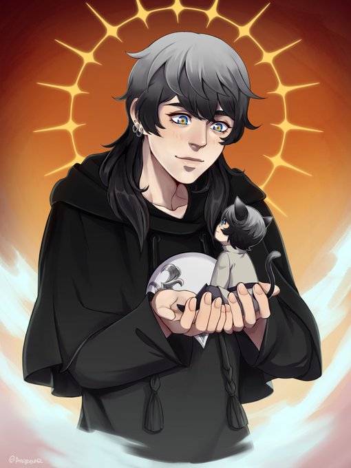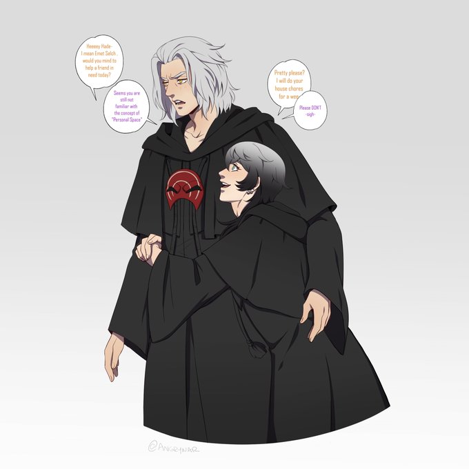 My azem is a small chaotic man with a pretty face and lack of self control #EmetSelch #Endwalker #emetazem #azem #hythlodaeus #Elidibus #FFXIVART