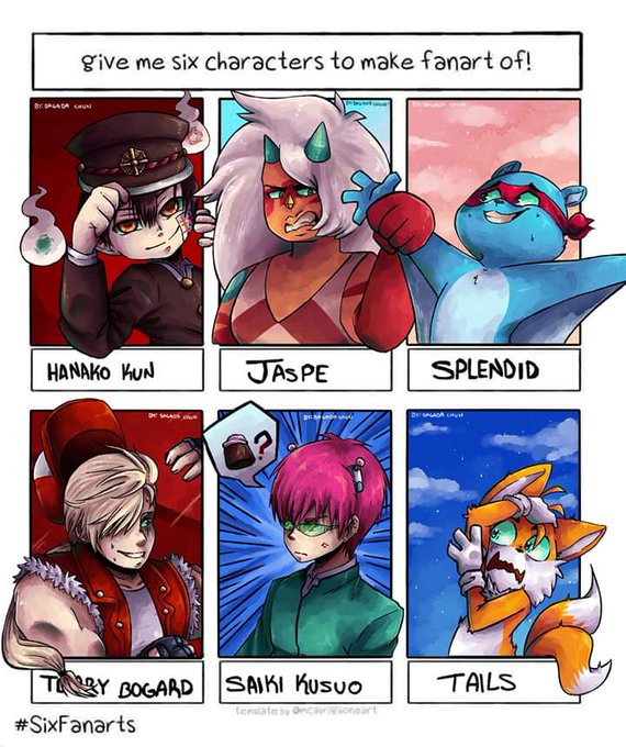 Lo hice en facebook #sixfanarts #fanart #saikikusuo #splendid #hanakokun #jasper #stevenuniverse #happytreefriends #htf #tails #sonic #terrybogard