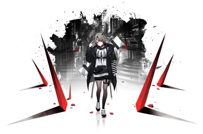 Skin mockup of Absinthe for @libertas_zine 🐻 Her attire is a hybrid of a casual techwear and emo clothing that I designed! #Arknights #アークナイツ