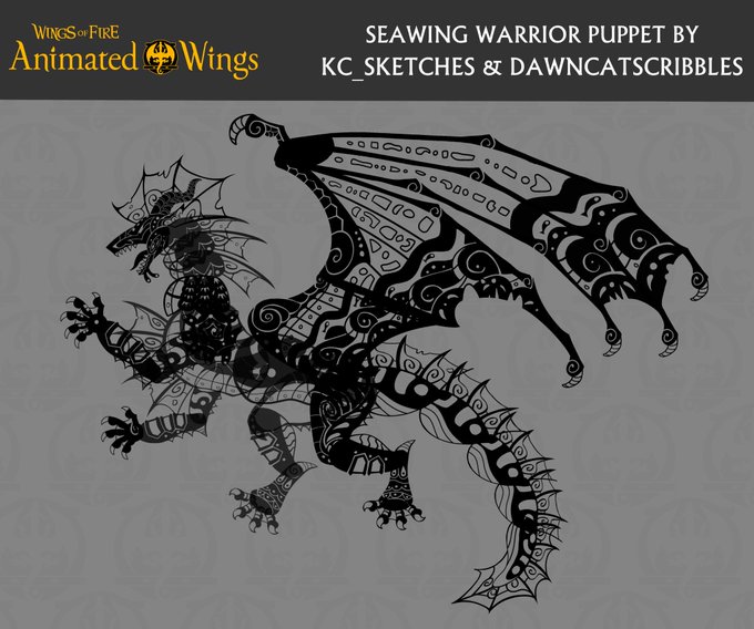 Seawing Warrior shadow puppet by @KcSketches and DawnCatScribbles (IG) #WingsofFire #animatedwings