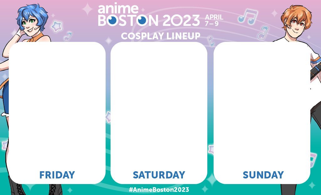 Calling all #Cosplayers! Use our official graphic to show off your cosplay for this year's #AnimeBoston like the idol you are!