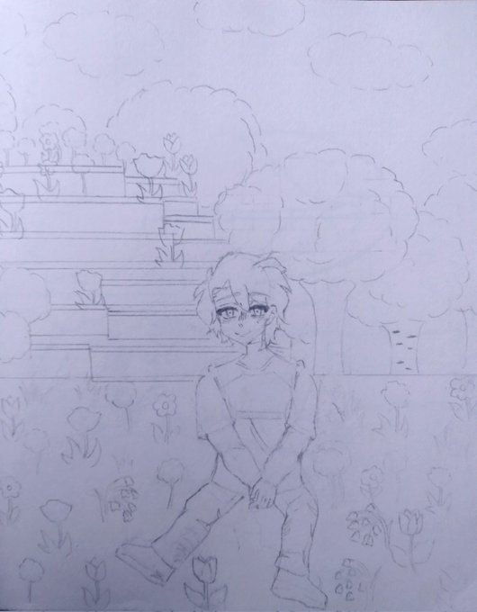 Hello, I'm sorry i haven't been posting but have this drawing i been working on, i really put a lot of work on the background, i really like this drawing it gives me calming vibes ( ◜‿◝ ), I'll see you in another post bye bye for now #tommyinnitfanart #dreamsmpfanart #sketch