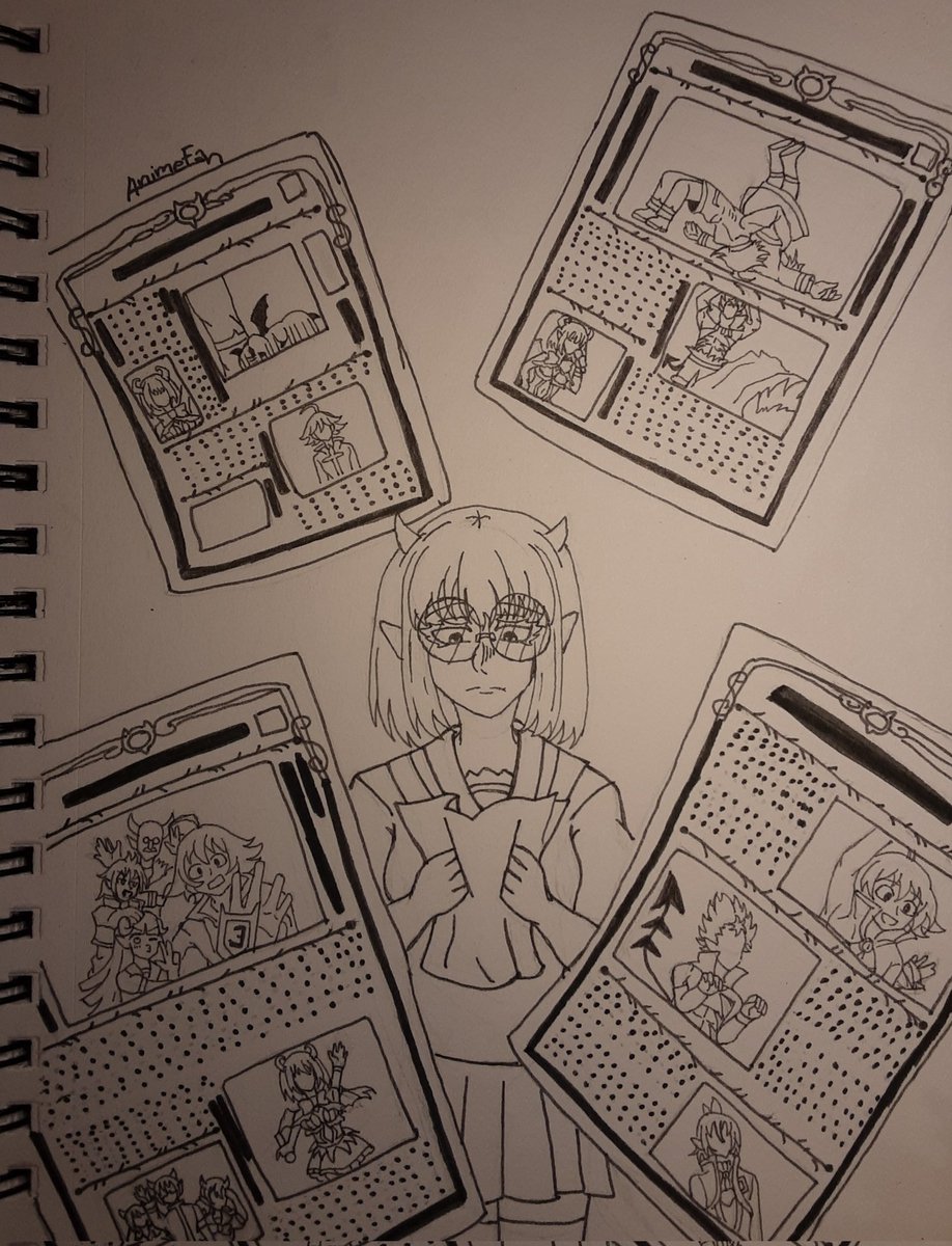 2 day: jealousy This took me so long to make because i always have to make difficult everything for myself 🤦♀️, anyways i really like the concept for this drawing, it's not good quality but i tried (~‾▿‾)~ #mairumainktober #mairumatwt #Inktober #ink