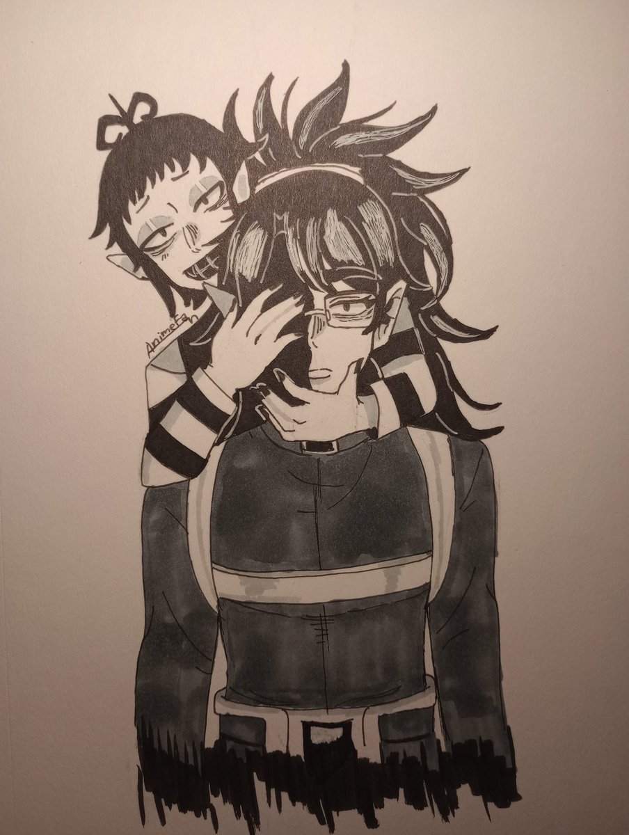 6 day: Blind For some reason i like to let my mind go into deep thoughts 😂, i enjoyed doing this drawing drawing two characters that i rarely get to draw was satisfying #mairumainktober #mairumatwt #ink #InkDrawing #inktober