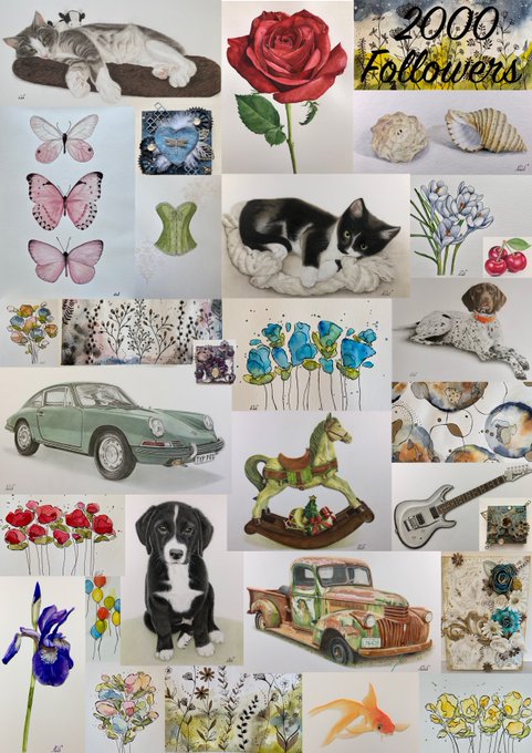 "2000 Followers" Yay, I made it to 2000! Thank you everyone, it means the world to me. I've put together a collection of my work from the last couple of years and hope you like. #followers #collection #art #watercolor #drawing #mixedmedia A little bit of everything, 💗💗💗