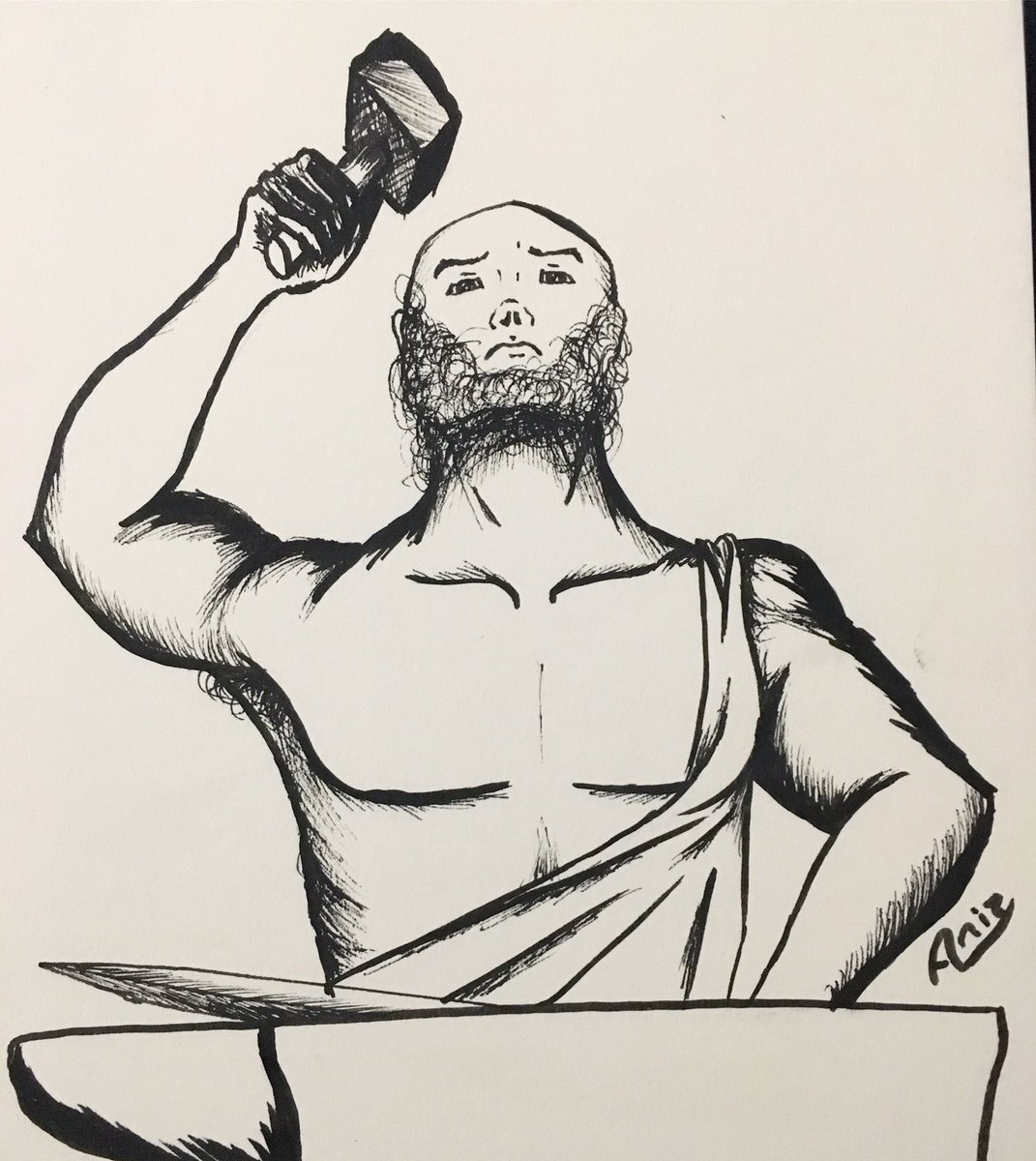 Inktober Day5: Build. A little #greek #mythology for today, #hephaestus god of #fire and metalworking the one who #build all gods and goddesses weapons. #aniz_art #god #weapon #inktober #ink #hefesto #griego #mitologia #fragua #fuego #dios #aphrodite #afrodita #blacksmith #greek