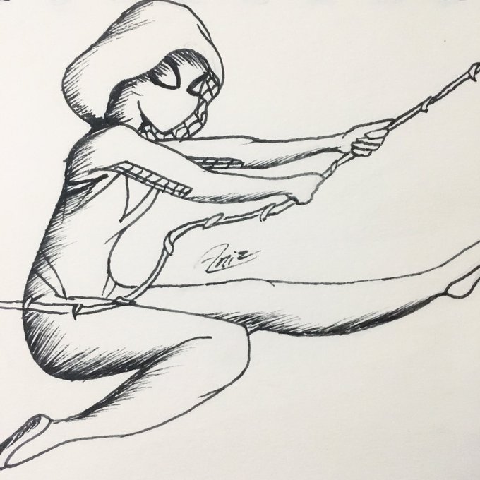 Inktober Day9: #Swing. Keeping up with the hero-inktober, #womenpower Spider Gwen. #aniz_art #art #arte #illustration #ilustraciones #inktober2019 #inktober #ink #superhero #spiderman #spidergwen #spidergwenfanart #marvel #spiderverse #spider #gwen #superheroes #comic #stanlee