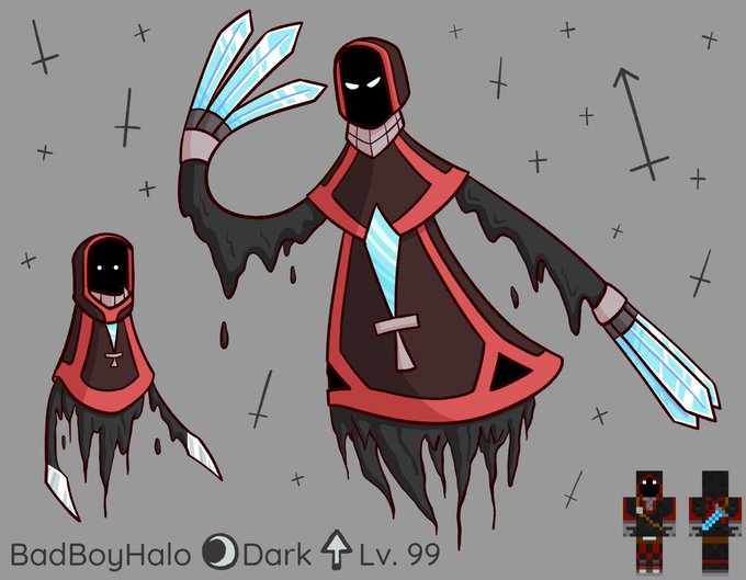 A Pokémon/creature design based on BadBoyHalo’s Minecraft skin! #badboyhalofanart #creaturedesign