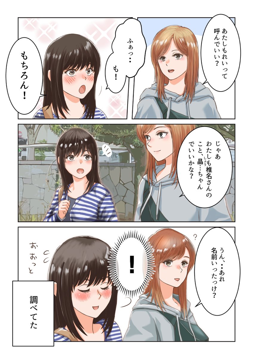 創作漫画 第3話、見開き入れて6ページです😃 はじめてお互いの顔を見たときの出来事です #pixiv pixiv.net/artworks/10351… #創作漫画 #創作百合 #漫画が読めるハッシュタグ