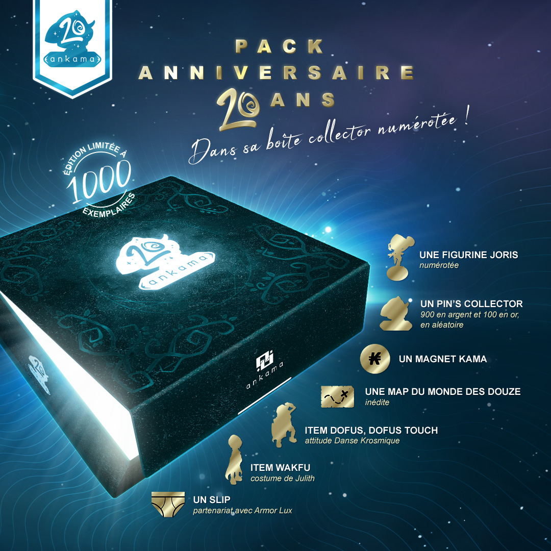 😍 Le Pack Collector Édition Limitée 20 ans se dévoile enfin ! Rappelons qu'il est encore temps de participer au concours #AnkamaShop pour tenter de remporter le vôtre. Vous avez jusqu'à ce soir ! 🤞 Que la guigne d'Écaflip vous épargne : bit.ly/2XJNU5x 🍀