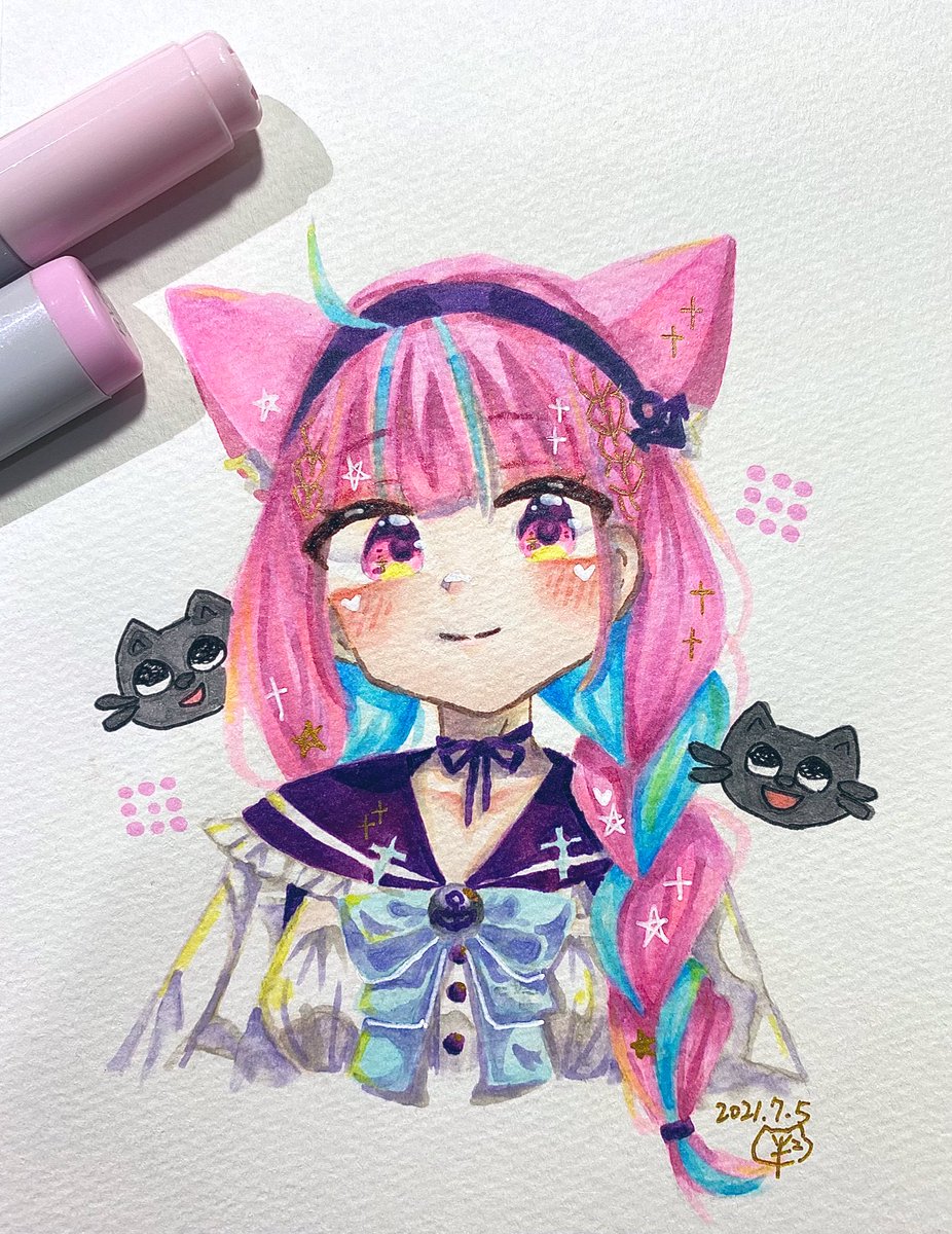 0 9 畫了我的主推 #手繪 #麥克筆 #copic #Vtuber #hololive #あくあーと #湊あくあ 21/07/05 16:04