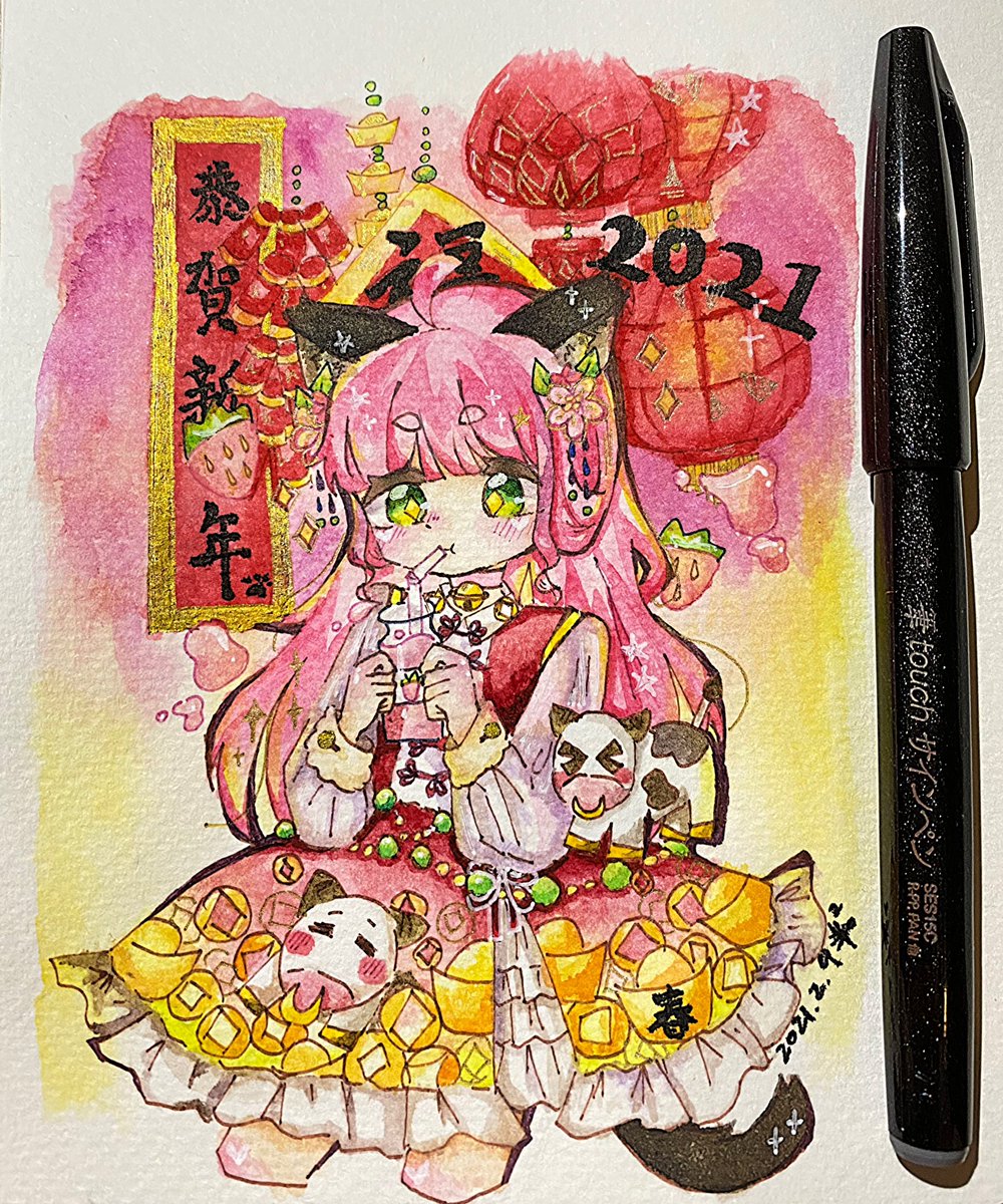 0 3 新年快樂🎉🎉 #新年賀卡 #新年快乐 #手繪 #水彩 21/02/09 02:25