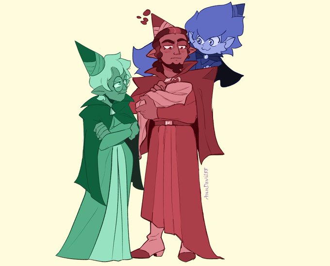 If I had to choose the three good fairies to take care of the prince, Darius and Eberwolf would definitely be chosen. Along with Raine, they already had a threesome before. #TOH #TheOwlHouse twitter.com/bugchuckles/st…