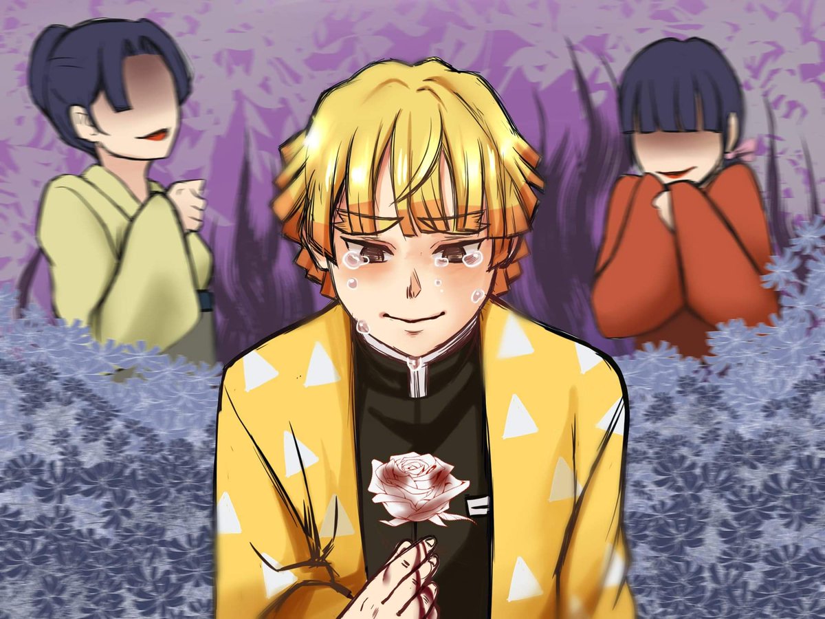 Hace tiempo deseaba dibujar esto. #zenitsu a pesar de que una mujer lo hirió, a sabiendas de que a su alrededor le mentian, sigue teniendo buena fé. #kimetsunoyaibafanart #kimetsunoyaiba #digitalart #fanart #kny #knyzenitsu #drawing #draw #Flowers