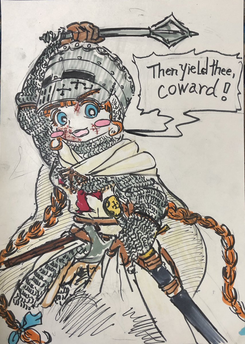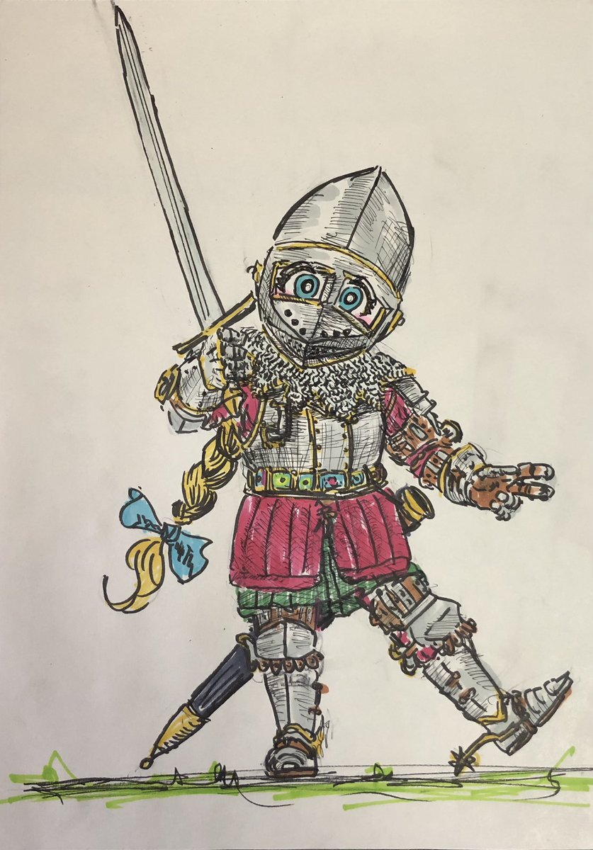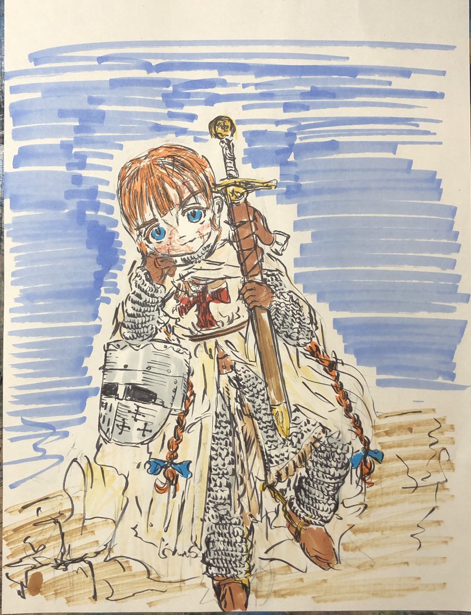 修道騎士(客分)アンナちゃん。 一昔前のアニメっぽい顔を意識しつつ描いてみました(╹◡╹)