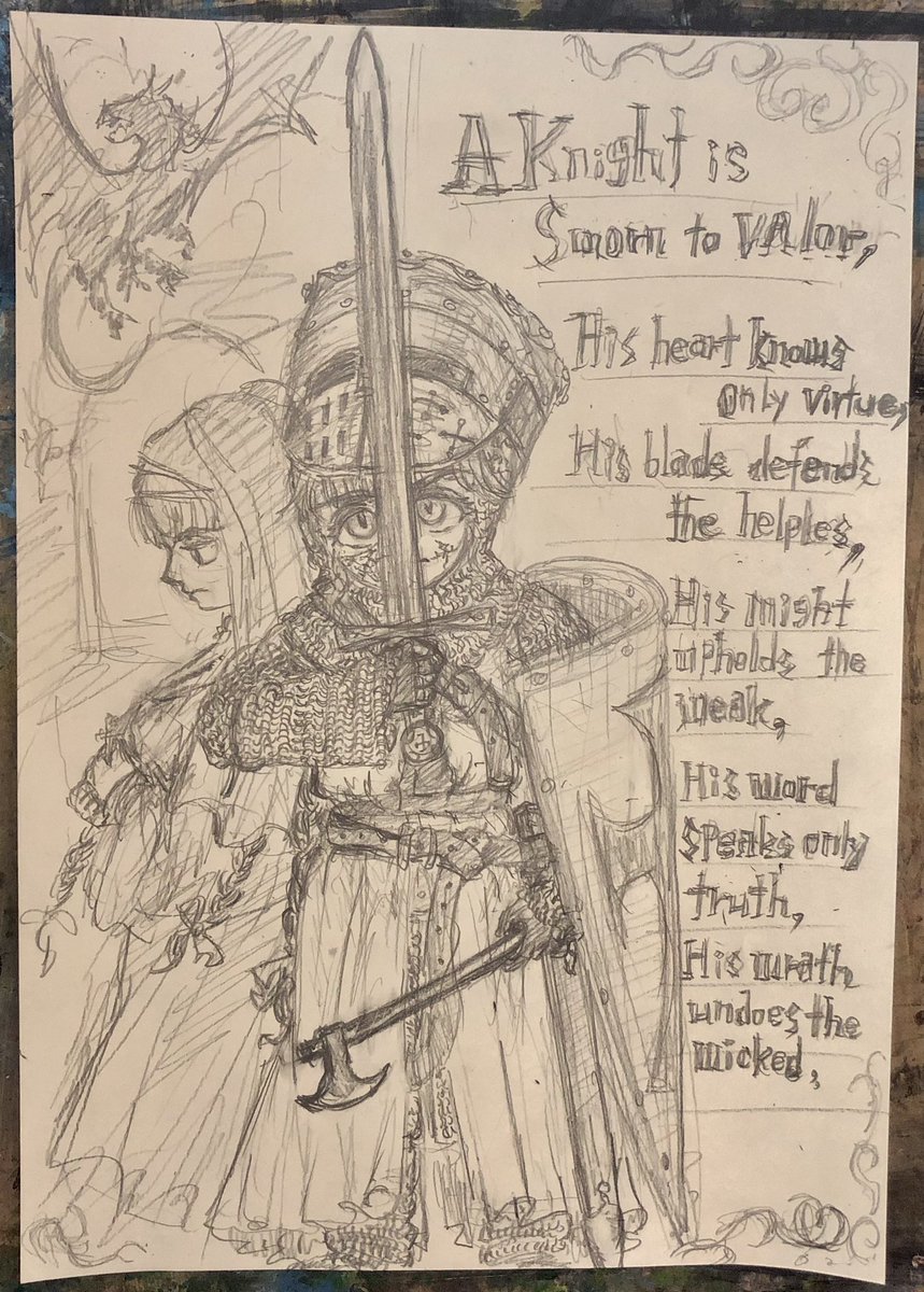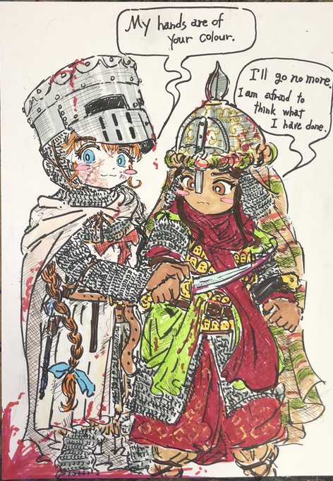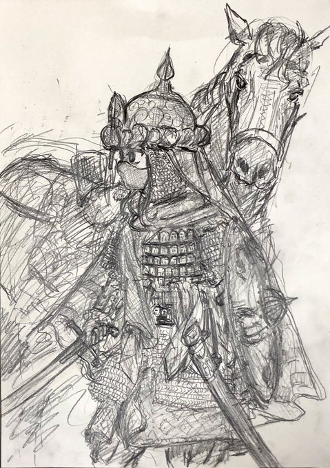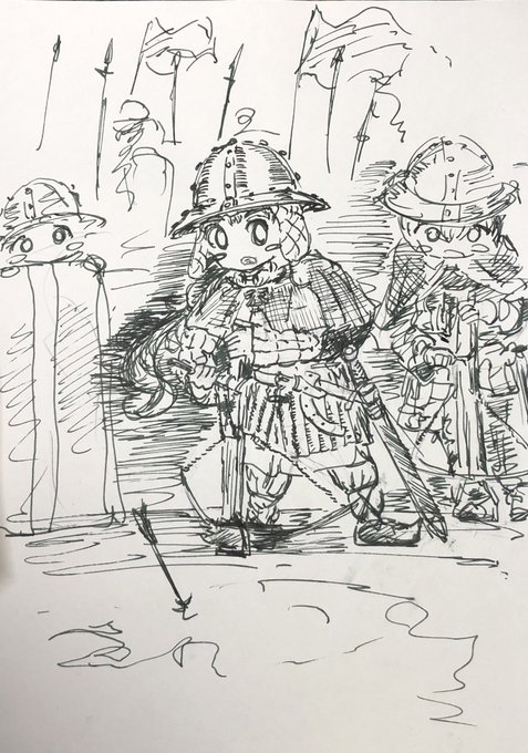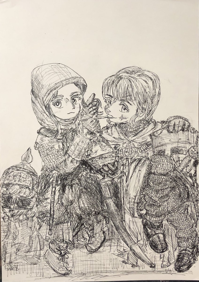 らくがきです(╹◡╹) 萌え袖ガータールーズソックス要素をとりいれた鎖帷子…(*゚▽゚*)