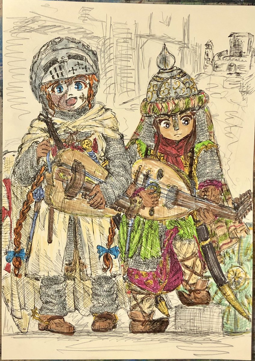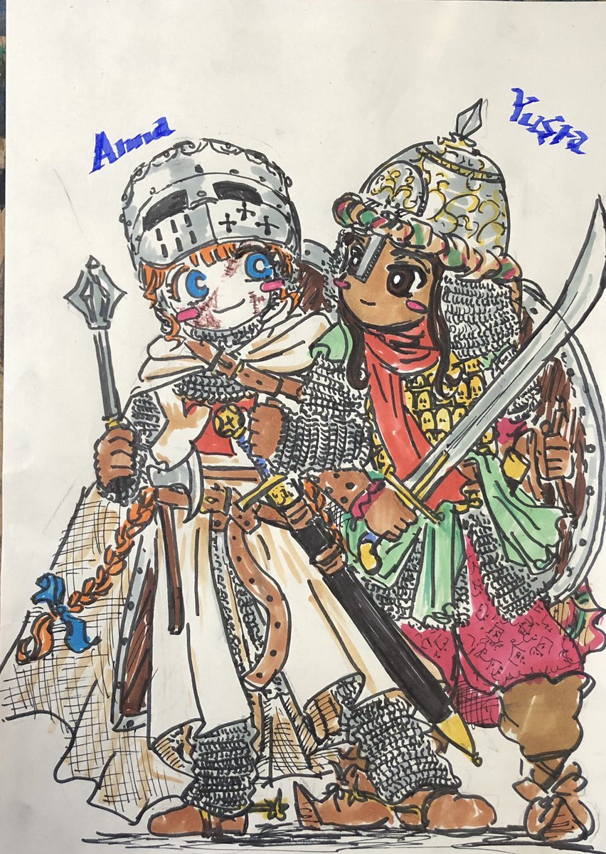 らくがき(*^▽^*) フランク人のアンナちゃんとサラセン人のユスラーちゃんです✝️🌙