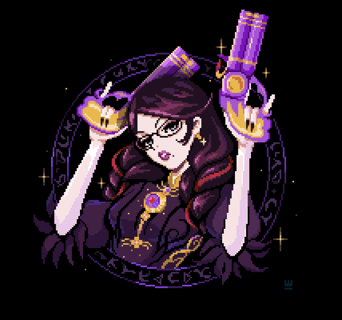 "It seems I'm unfashionably late, but I'm ready to give you everything you want". #pixelart #ドット絵 #Bayonetta