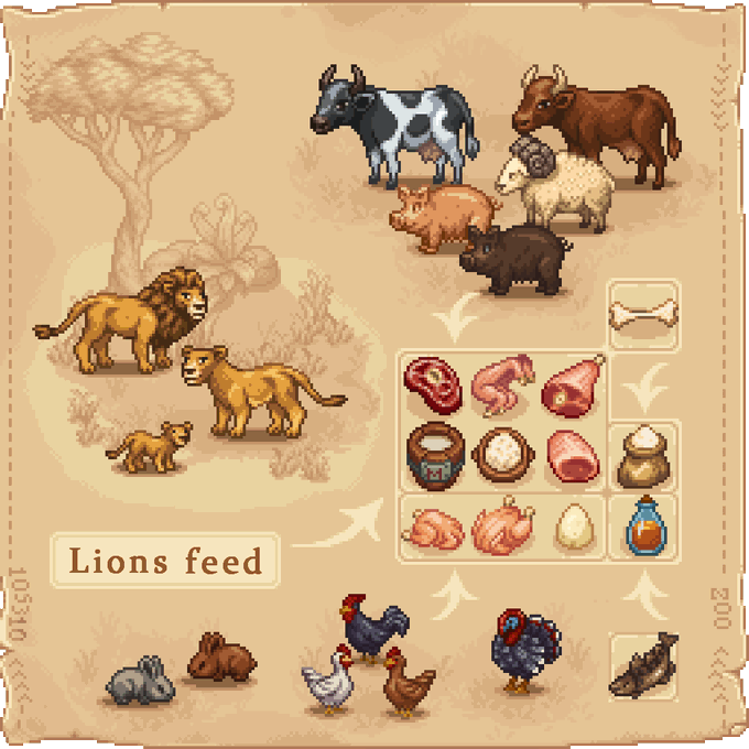 Hey #PortfolioDay I'm Anna, a #pixelartist and indie developer. I create cute art and am developing Super Zoo Story, an open-world zoo simulator with RPG and farming elements.
