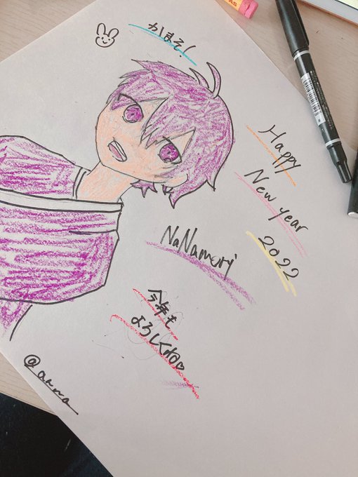 新年初お絵描き…! クレヨンで挑戦してみたんだけど、やっぱし下手くそ…( ´•_•。)💧 みんなのお絵描き見たいなぁ(`✧ω✧´) #すとぷりぎゃらりー #ななもりぎゃらりー #アナログイラスト
