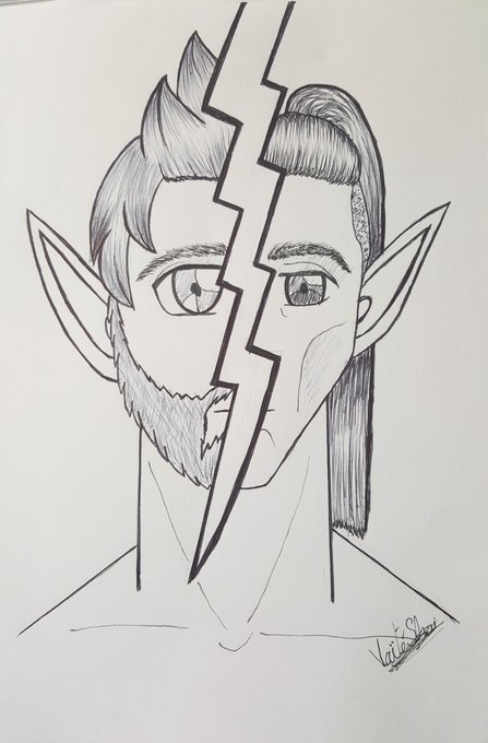Un #thème, un #dessin. Thème du 23ème jour : #déchirure #rip #inktober #inktober2020 en fusion avec le inktropeur thème #elfe #Fanart de Neverest et de Silver, des #personnages que j'ai #crée