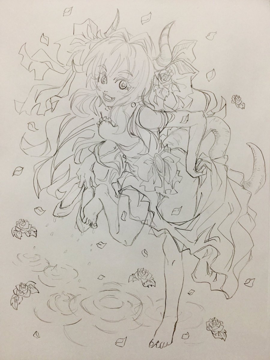#ふれびあーと #竜崎あわい 普段、絵を描く時ど〜〜〜しても線が多くなって見辛い感じになるので、なるべくシンプルに見易く!を心掛けた!! ・・つもりだったんです。はい( ̄□ ̄) パンチラしないように描いたら、コレはコレで・・と言うより、コッチの方がいかがわしい感じになって笑う( ̄∇ ̄)