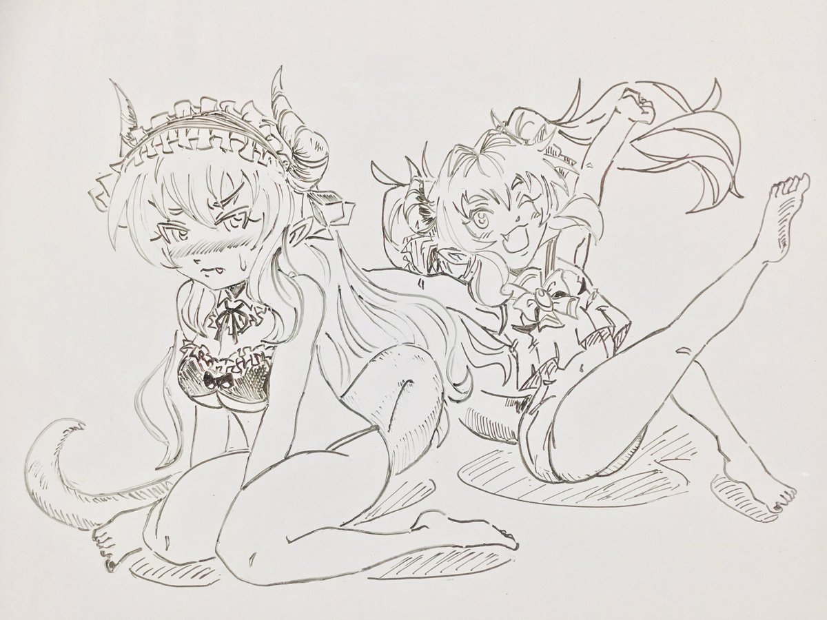 #ふれびあーと #竜崎あわい メイドヴィア🐉ちゃんにかかれば外れた角も朝飯前のお茶の子さいさいで元通り!!・・・・のはず! P.S.前回の『ふれびあーと』とThank you!絵の続きになってしまったので下に貼っておきます( ̄□ ̄;)そちらも良ければ観てくんしゃい!
