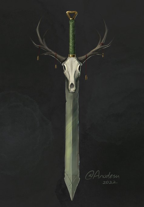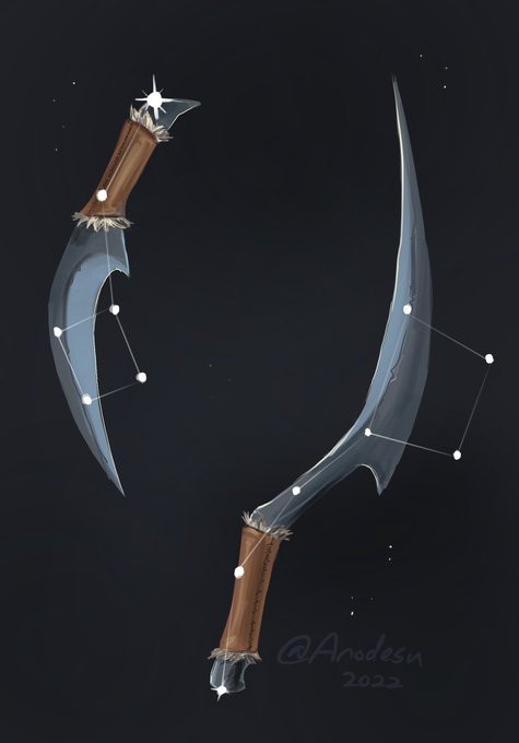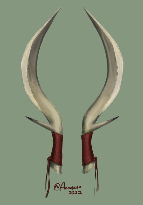 #swordtember day 22: horn/antler. A pair of scimitars made from the dropped antlers of daggerdeer in the region.