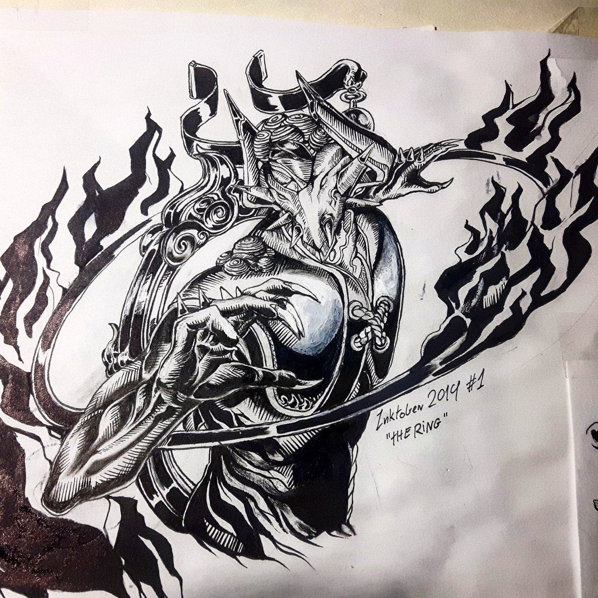 Well, while ill be sobbing from my corner of shame by showing off these two inktobers, ill wish you all good morning, but after all, these doodles couldnt get worse ♡ #warframe #warframefanart #nezha #nidus #inktober #inkart #traditional