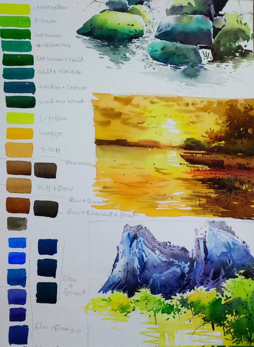 Lession 1st / Exercise 16 ( GREEN TONE ) 🟢 🎨 watercolor step by step 👉 youtu.be/FWtsfhYs5Ls Colour - 🟩 🎨 Lemon yellow permanent green light sap green olive green Varedian green Cobalt Blue #watercolor #watercolorpainting #watercolorillustration #painting