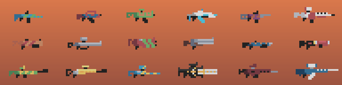 1 6 Some guns #pixelart #gameart 19/05/10 21:18