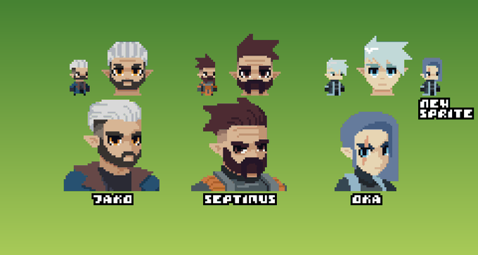 Character sprites, crappy old portraits and new awesome portraits #pixelart | #pixel | #gameart | #scifi | #rpg