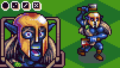 "I will have my revenge, in this life or another!" shouted the dark elf that wanted an armor but was given only a tunic. :D (Chaos, [2] Dark Elf, [3] Tunic, [5] Double Axe) #pixel_dailies #pdtactics #pixelart #ドット絵 #pixel