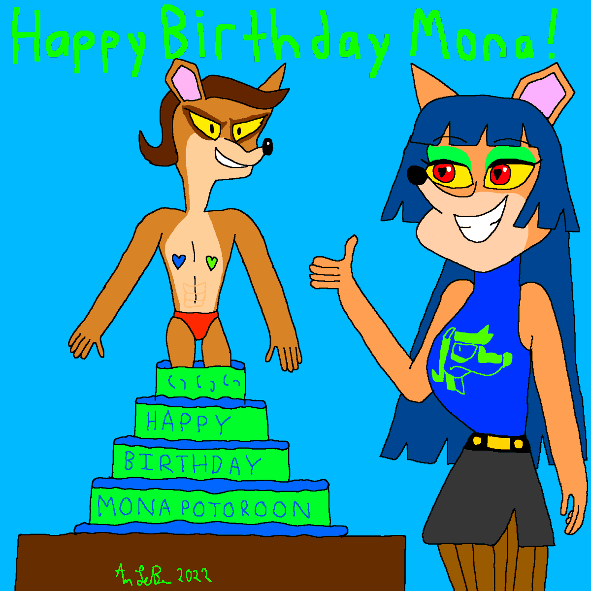 Happy Birthday Mona. 🎂🎁🎈🎊🎉🥳 I drew Pinstripe Potoroo popping out of your birthday cake & looking so sexy, I hope you like this birthday drawing @m5mona & also have a fantastic birthday as well. 💙💚 #PinstripePotoroo #CrashBandicoot #CrashBandicootFanart #CrashBandicootOC
