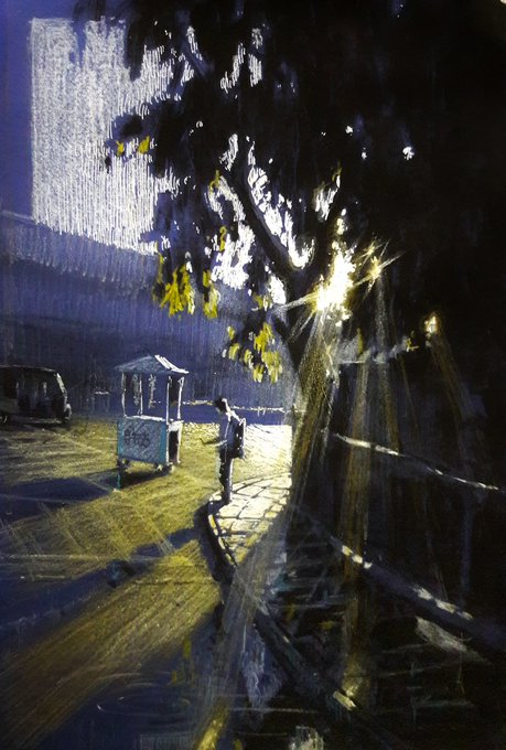 Today's @inktober painting, a misty morning at the bus station! Commission works are open, please DM! #ArtistOnTwitter #artistsontwitter #art #Artist #inktober #Commission @urbansketchers #urbansketchers #PUNE