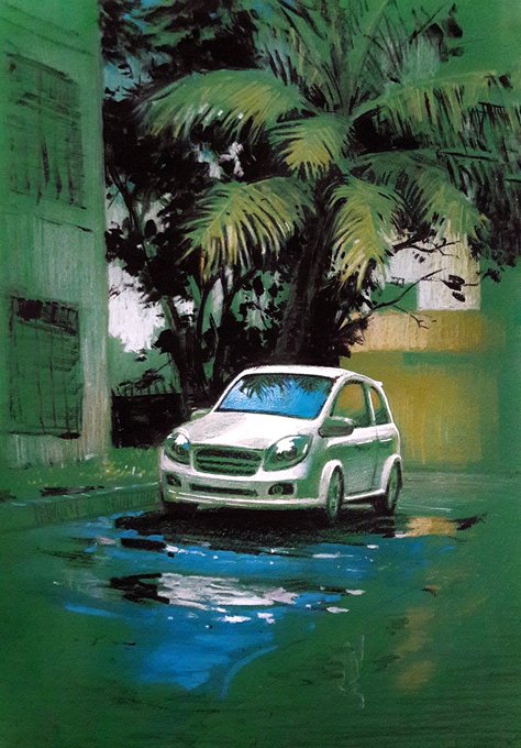 This car has been parked outside our building for a year, and I couldn't resist painting it! My next entry for @inktober, hope you all like it! DM me for commissioned artwork like this one #art #ArtistOnTwitter #artwork #paintingoftheday #illustration #inktober