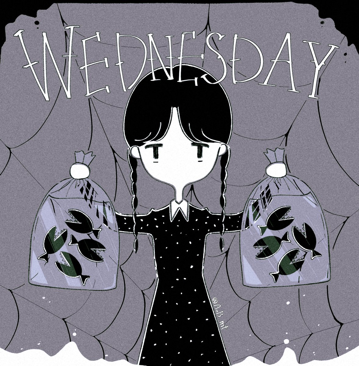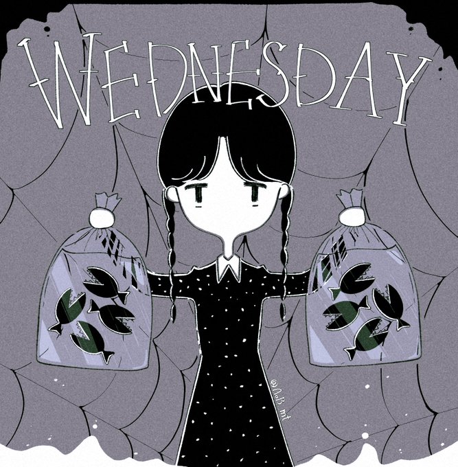 #illustration どの衣装も可愛くて、すごく面白いストーリーだった…🕷 シーズン2も楽しみ…! The Thing→👋🏻🫲🏻🤞🏻 #wednesdaynetflix #wednesdayaddams