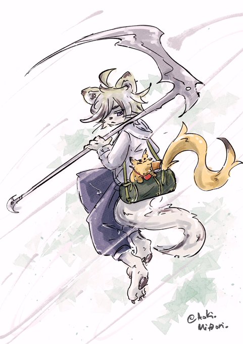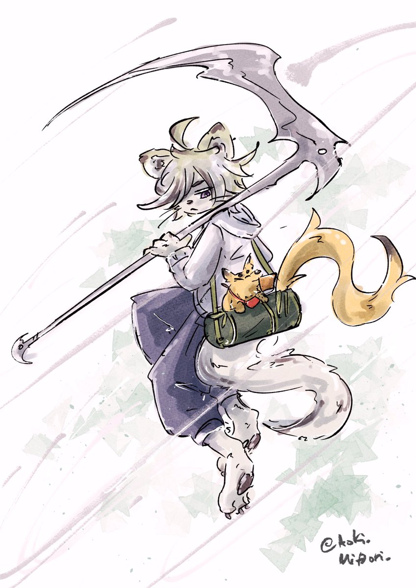 1 2 #人外版深夜の真剣お絵描き60分一本勝負 時間外参加失礼します お題は アナタが考えるカバンの中に入りそうな人外 鎌鼬から 「鎌鼬と管狐」 23/06/17 09:41