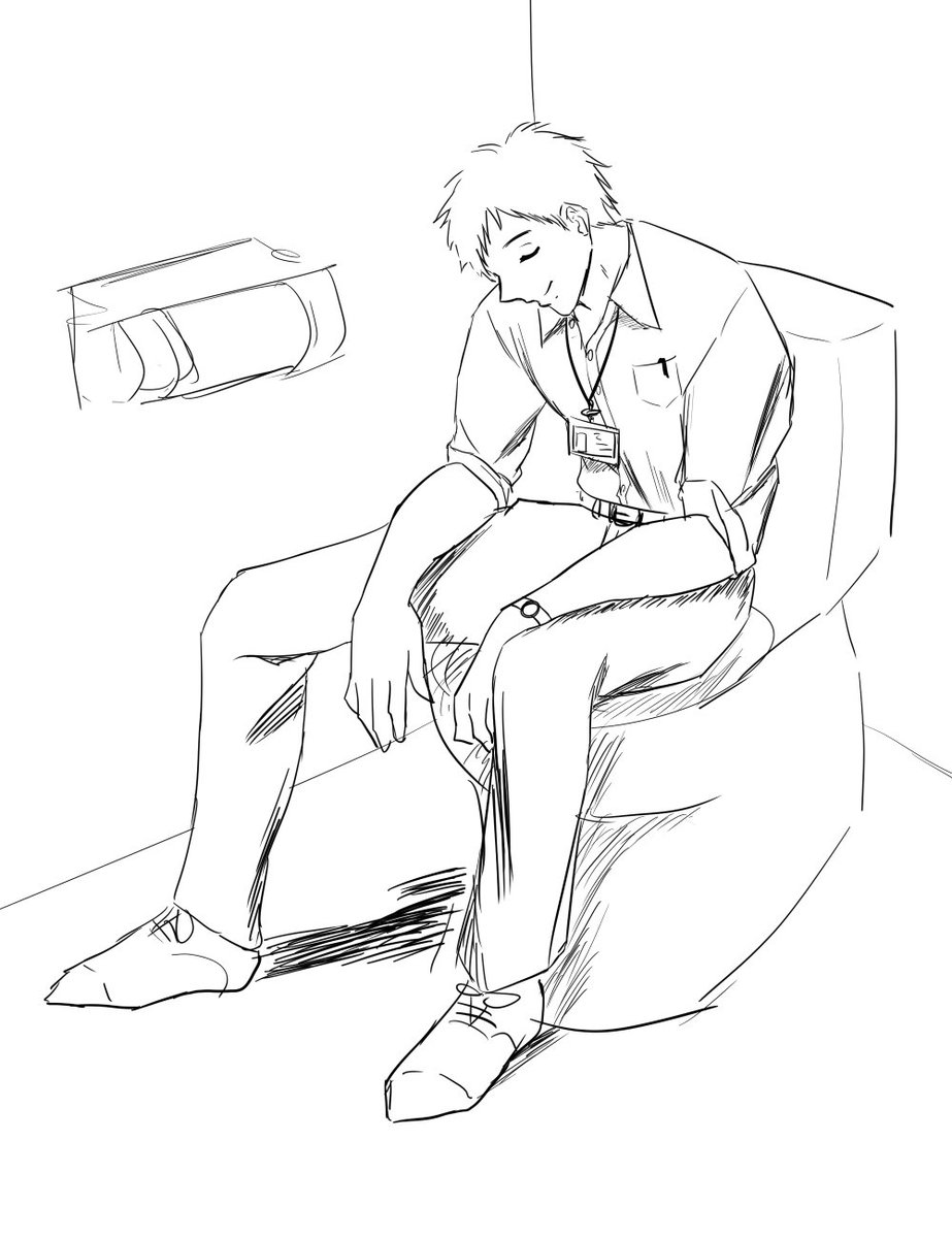 トイレで寝落ちする社さんです #社築納品物 #社起きろ
