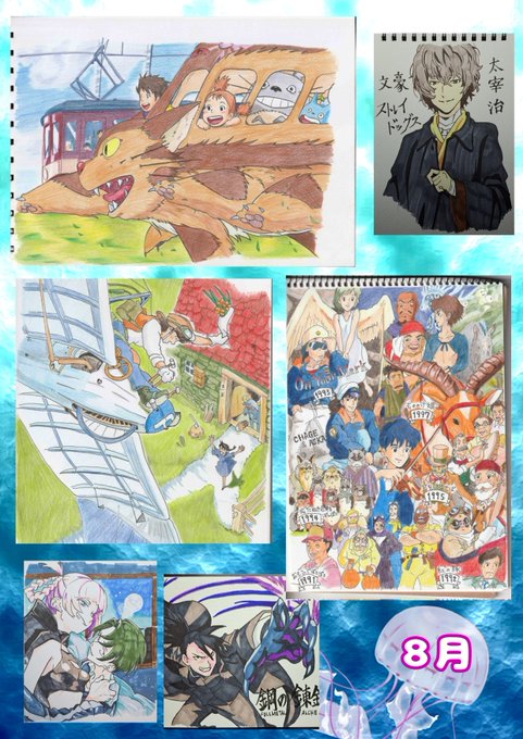 #今月描いた絵を晒そう もう8月が終わりますね… 腰やったり…さっき🐶に👍️の親指のつけねを噛まれたりで散々だったけど…ゆっくりはできたかな😚~🎵 8月も♥️🔁💬たくさんありがとうございました😭🙏✨️✨️✨️✨️ 9月もよろしくお願いします🙇