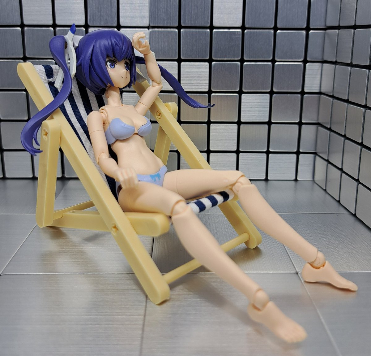 あとちょっと気になったのが30MSは椅子に座らせようとすると、足が揃わずガニ股になっちゃうんですよね このサイズのガルプラは小物と絡ませられるのも魅力なので若干マイナスポイントかもしれない #30MS #メガミデバイス