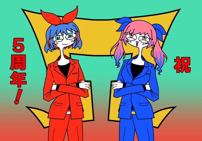 描けたァ!瑠璃姉5周年おめでとうございますと邪フェスお疲れ様でした絵です! 姫様も一緒に描かせていただきましたッ! #朝ノ瑠璃 #朝ノ瑠璃デビュー5周年 #あさの絵巻 #邪神ちゃんドロップキック